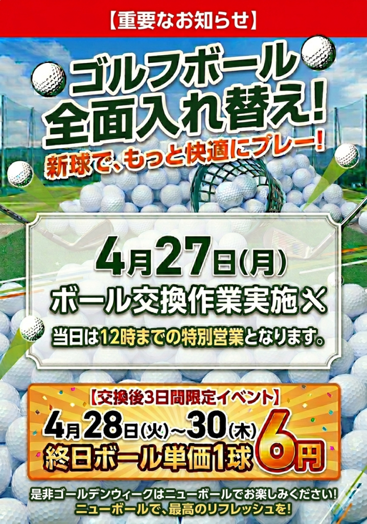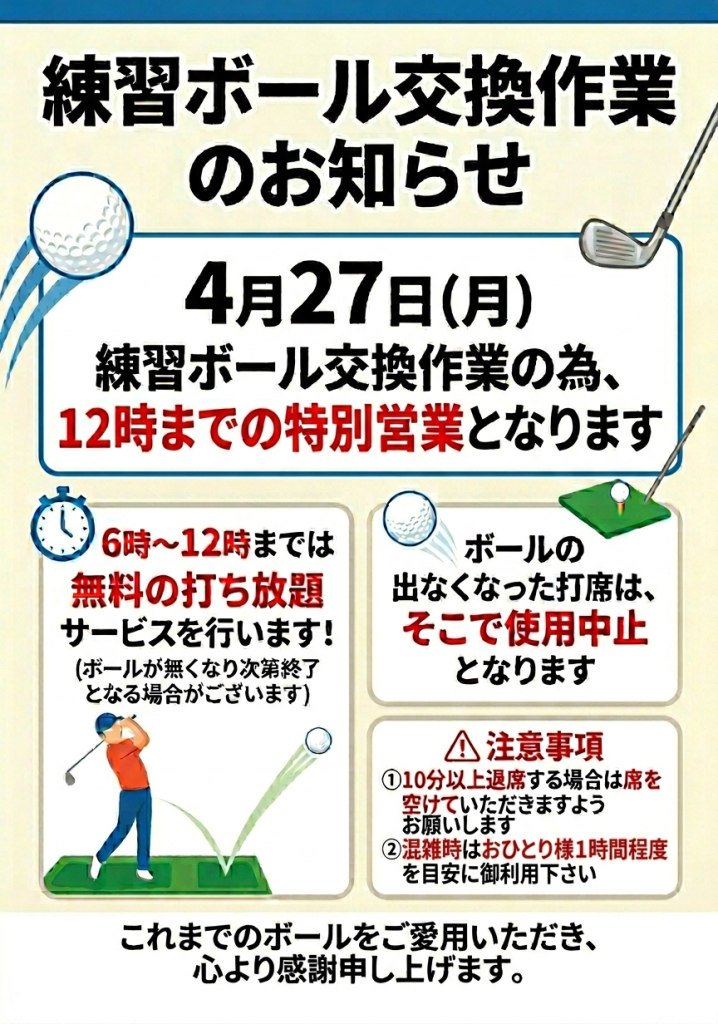 フロントにて女性プレイヤー限定で20球サービスいたします。