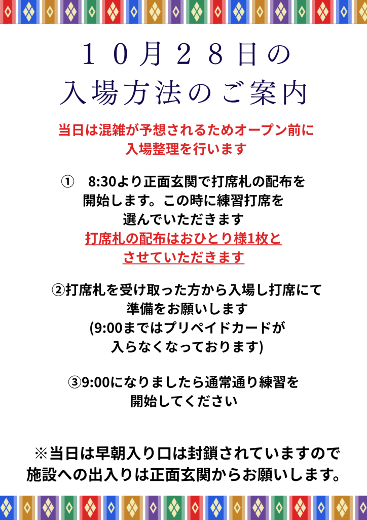 1.メンバーズ会員は通常の打席料300円のところ、100円になります。法人会員は無料になります。